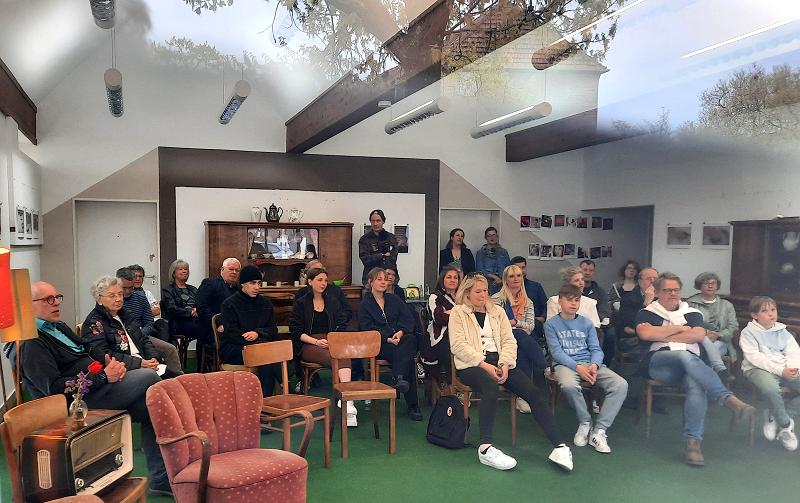 Zwischen alten Küchenmöbeln und auf ebensolchen Stühlen verbrachten die Gäste einen kurzweiligen Abend mit lecker Schnittchen in der Pause.