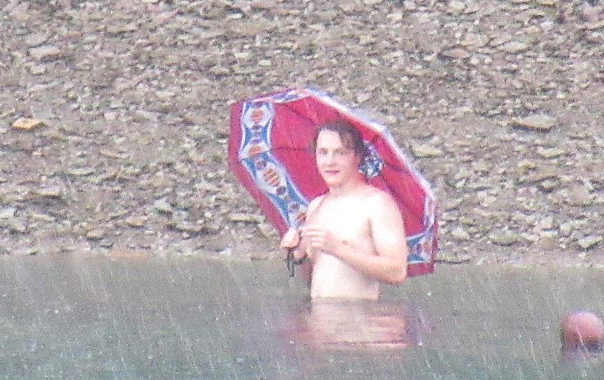 Zu Beginn bei herrlichem Sonnenschein schmeckten kalte Getränke, Eis, Kuchen u.v.m. Während eines kurzen Regenschauers ging man unter Deck, derweil am Ufer die Badegäste sich mit einem Schirm "trocken" hielten.